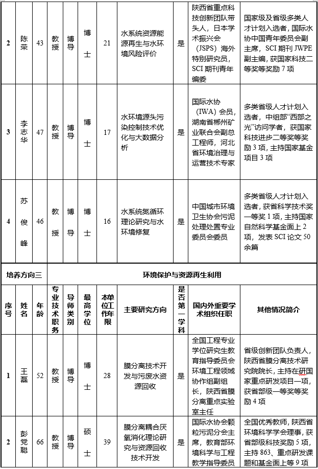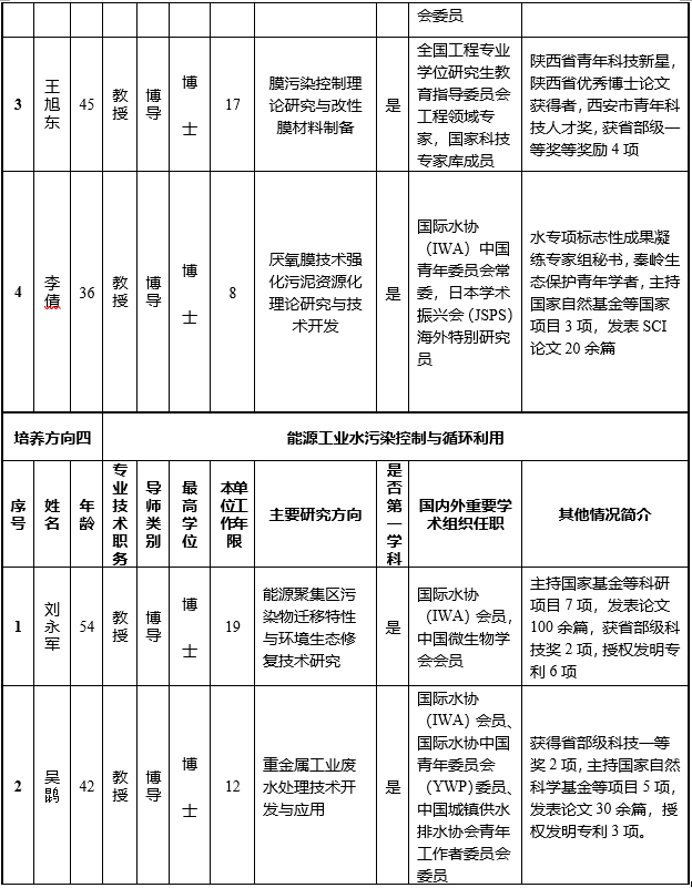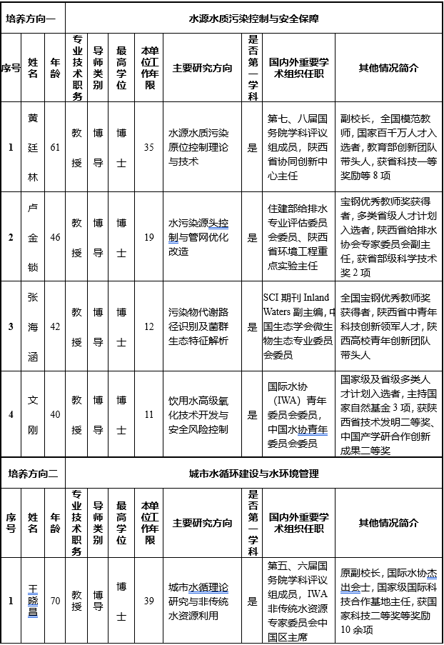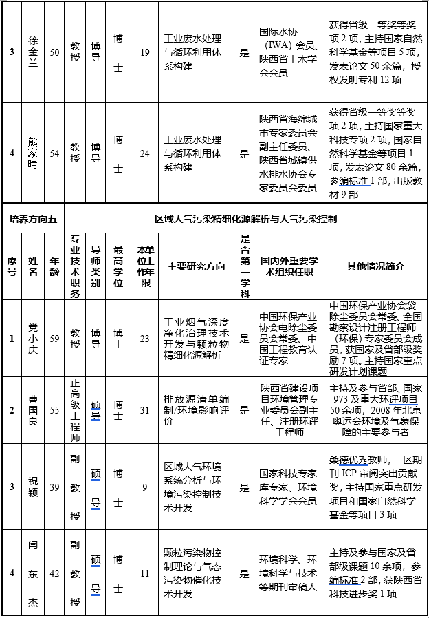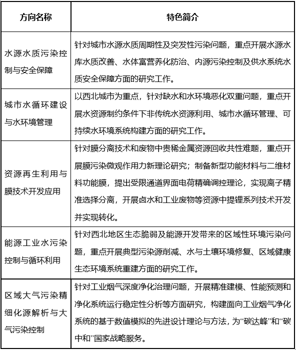 针对我国西部水资源短缺、环境污染严重、生态环境脆弱的现状,本学位点历经老中青几代人的建设、不断凝练培养特色方向,逐渐形成了在国内外具有重要影响力的五大培养方向,具体见表1。