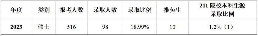 硕士研究生招生:报考人数516人,录取98人,录取比例为18.99%。其中推荐免试10人,萃英计划5人,西安建筑科技大学31人,外校主要有西北农林科技大学、兰州交通大学、山东建筑大学、青岛理工大学、陕西科技大学等40余所高校,生源质量稳定。硕士招生情况见表5。